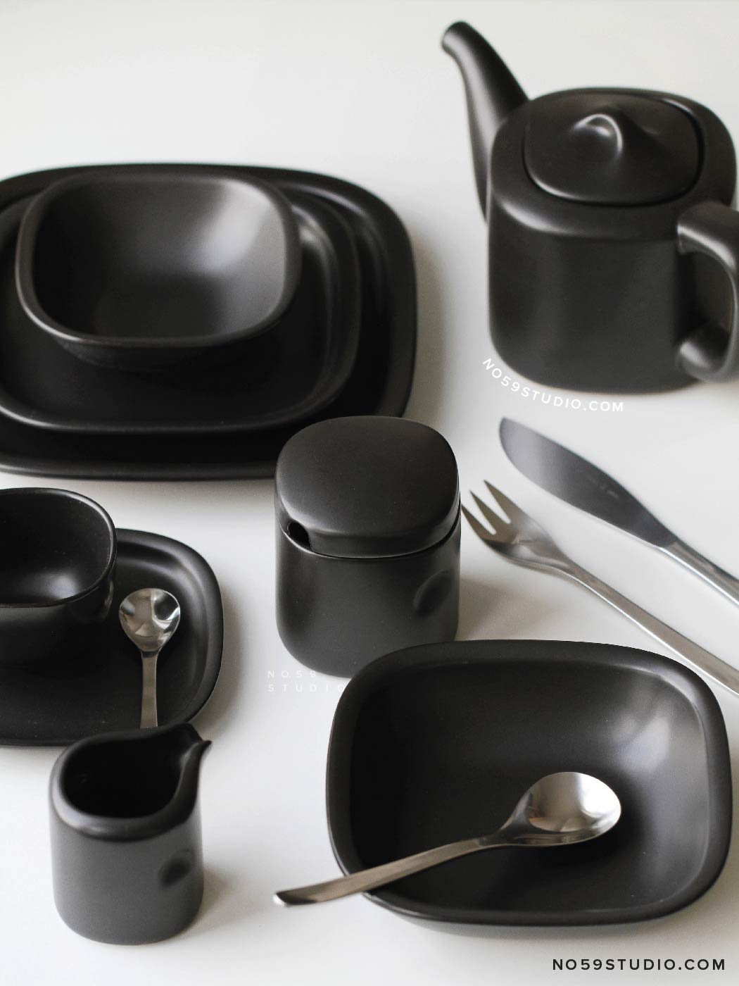 Designed by Sori Yanagi in 1982, the "Black and White Tableware Series" showcases softly rounded square shapes, crafted with simplicity and everyday use in mind. Finished with a matte glaze in both white and black, these pieces offer a gentle, understated elegance that complements any table setting.