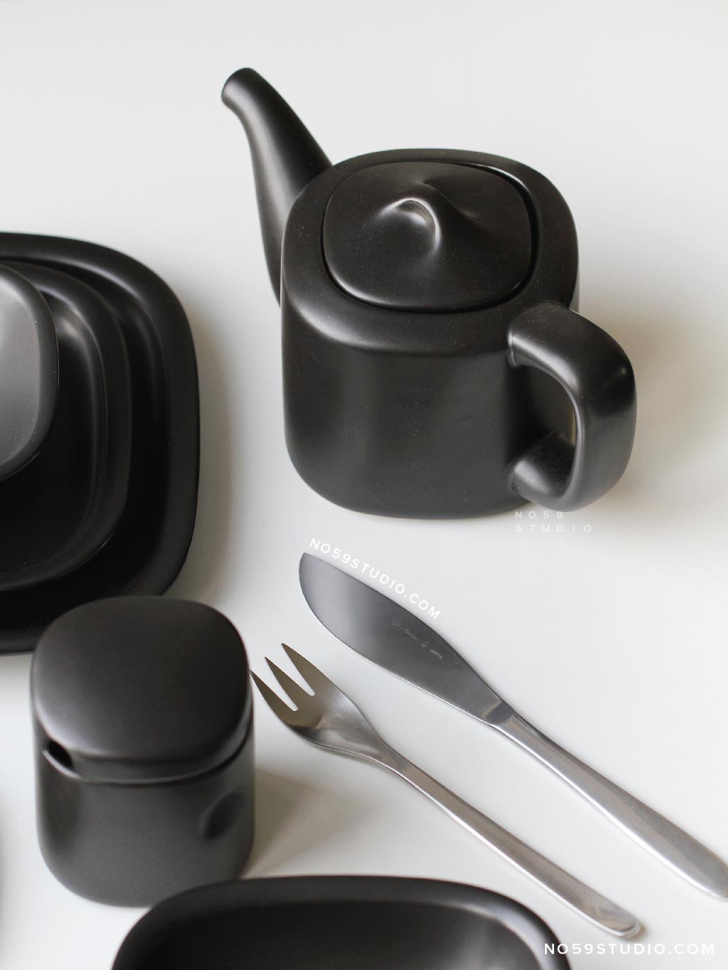 Sori Yanagi Black and White Collection – Black Teapot, Creamer, and Sugar Bowl
