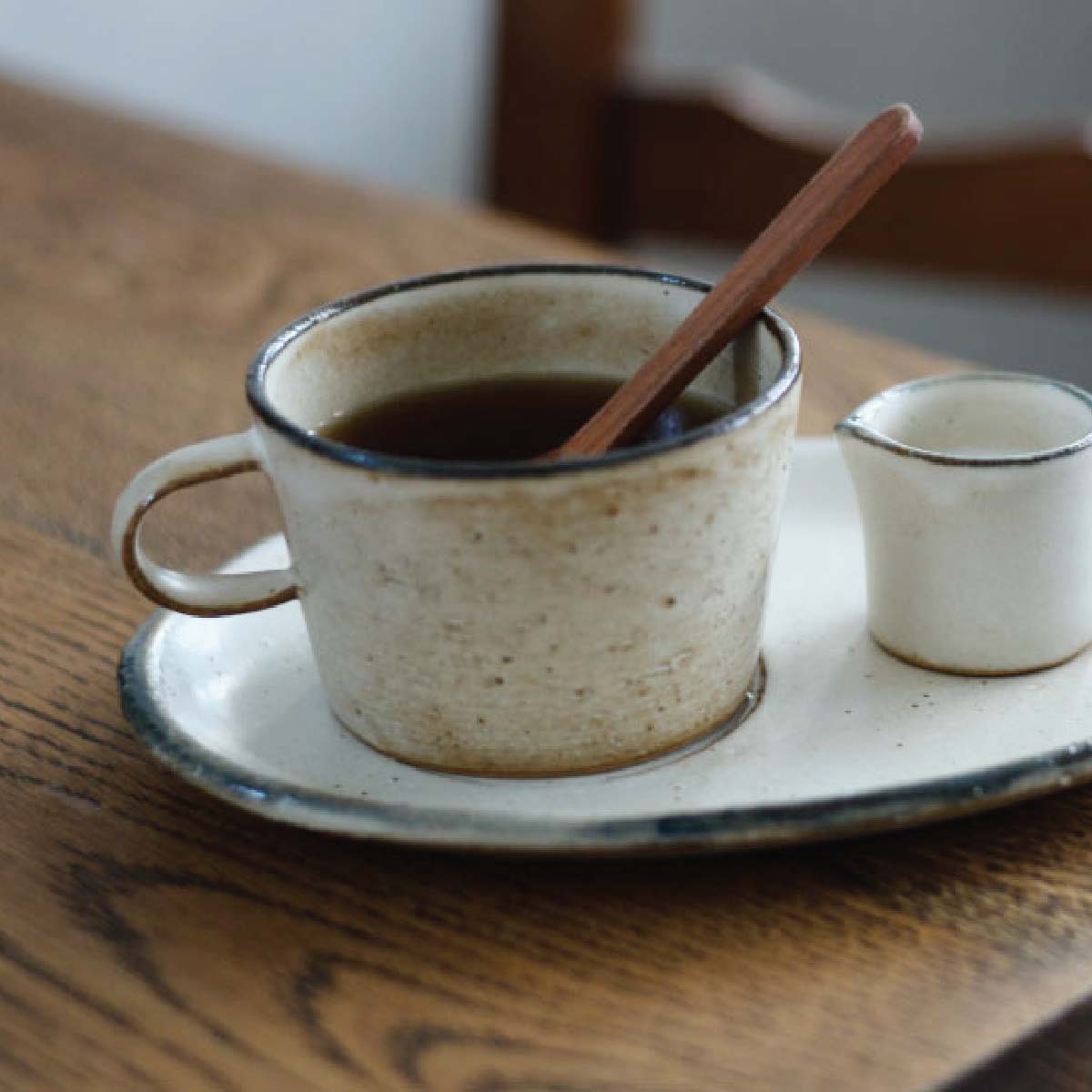 “Bouleau” in French refers to white birch. This tableware series is named after like that because the surface of it looks like a white birch. We have made this mug a little small hoping you can enjoy sipping coffee brewed authentically or carefully.
