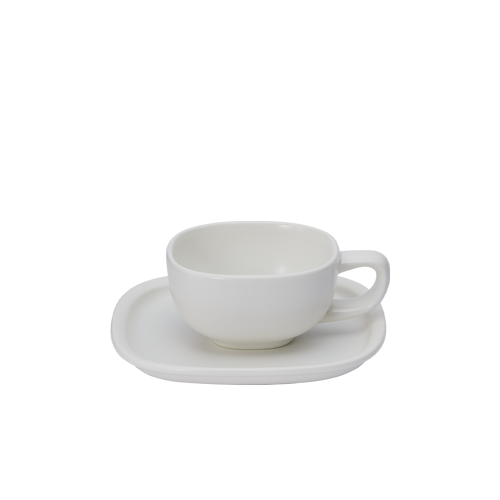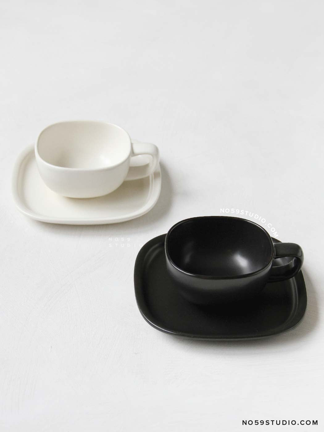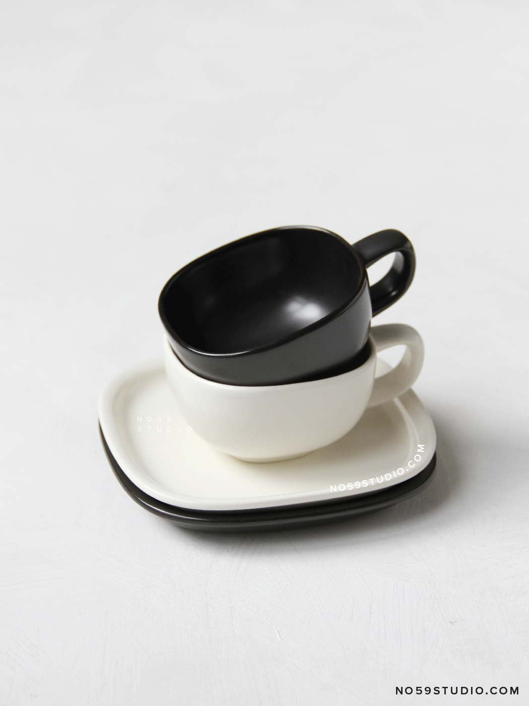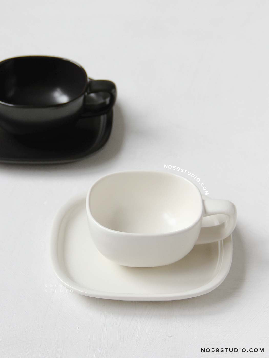The saucer, cup, and handle are unified in a softly rounded square shape, making them suitable for both casual and formal settings. The tea cup features a wider mouth compared to the coffee cup. Packaged in the original rigid paper box, they make a perfect gift or a treat for yourself.