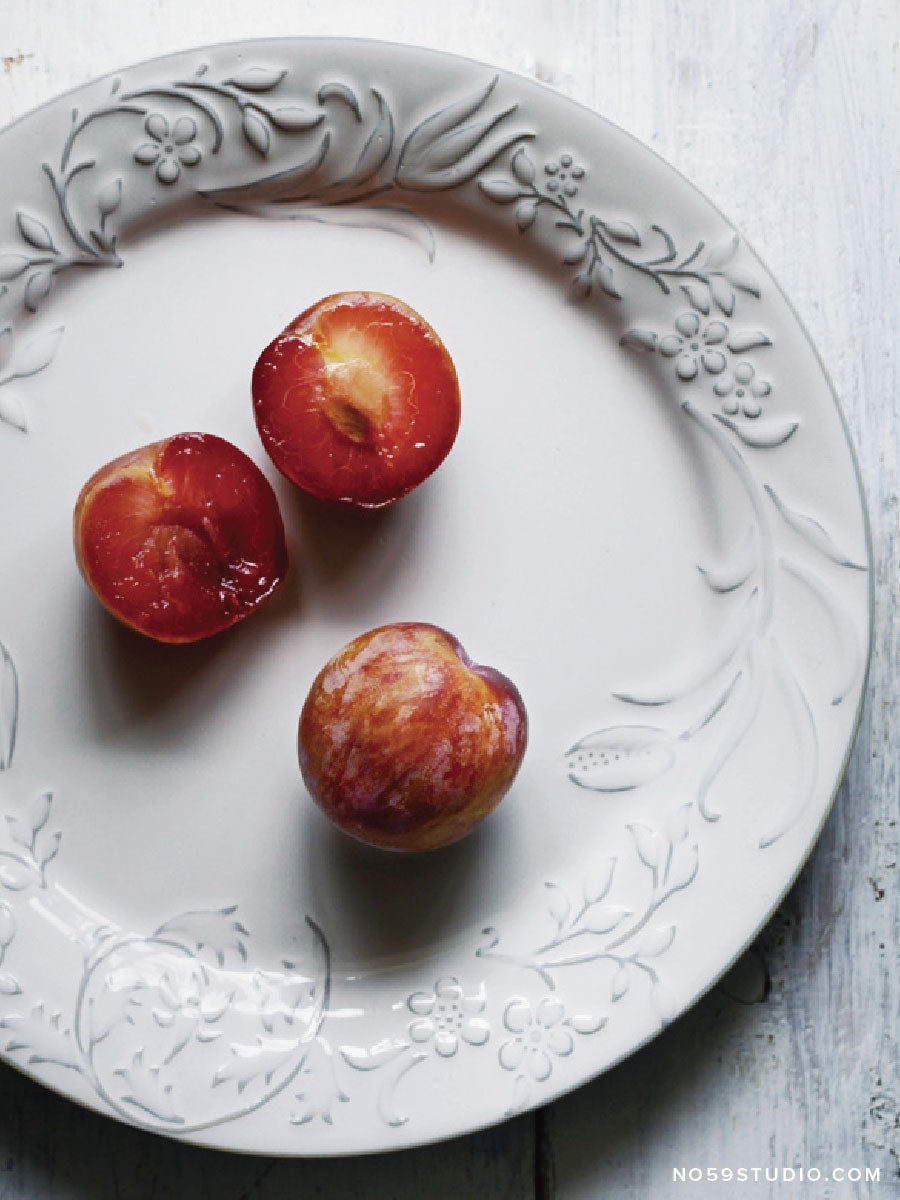 Enjoy the vintage-inspired botanical relief adorning the wide rim. This beautifully detailed plate complements any dish with effortless elegance, making it perfect for both everyday dining and special occasions. It also makes a thoughtful choice for weddings, holiday gifts, and more.