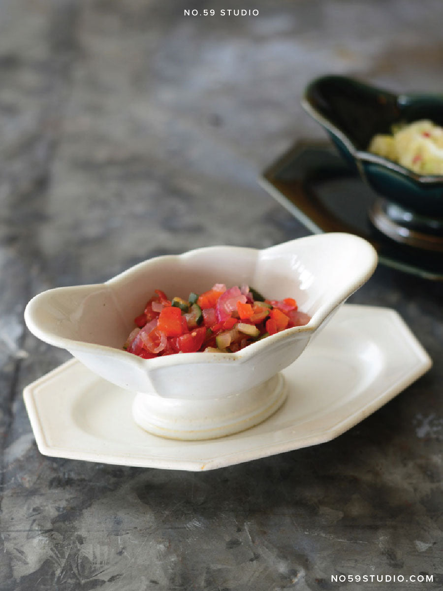 The Traiteur series features elegant tableware designed to showcase every dish with style and balance. The oval bowl and polygonal plate draw inspiration from traditional French saucier, creating a refined silhouette that beautifully frames your culinary creations.